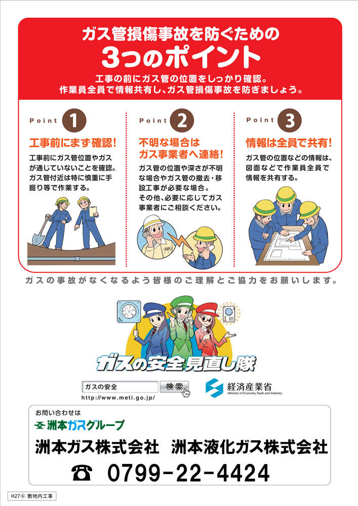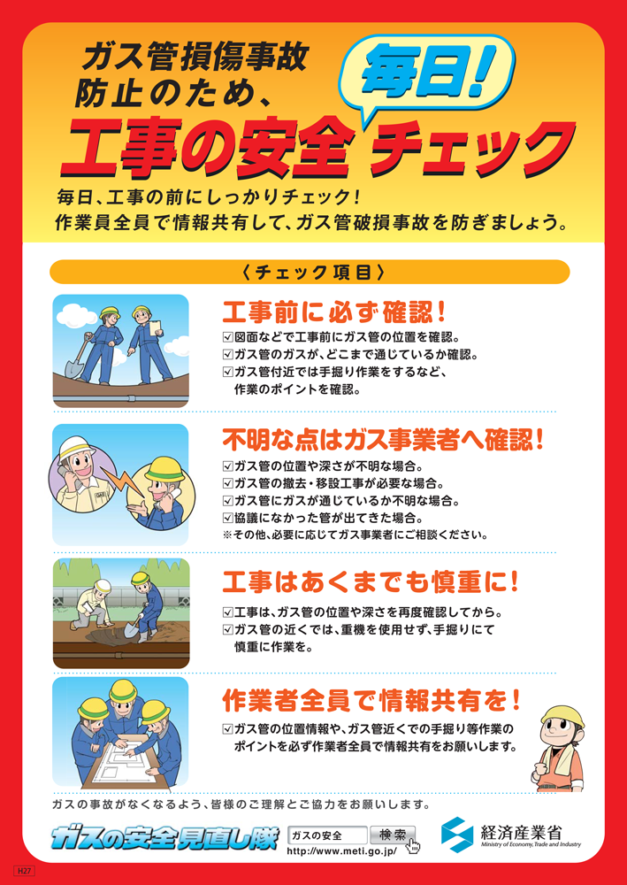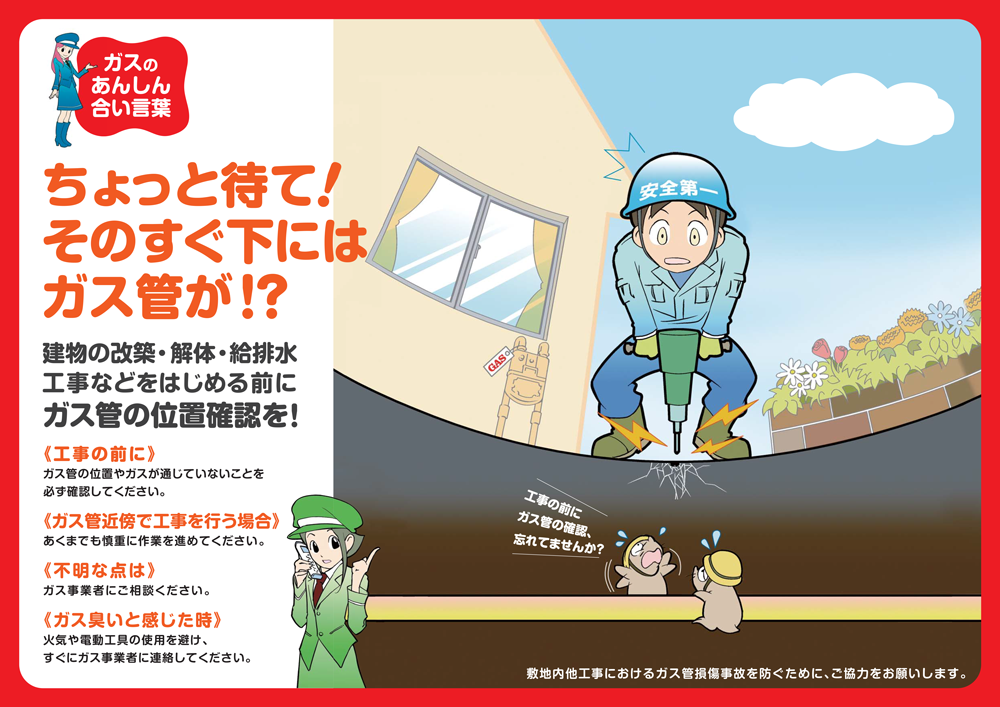 ガス菅損傷事故防止のため、毎日工事前にしっかりチェックしましょう!