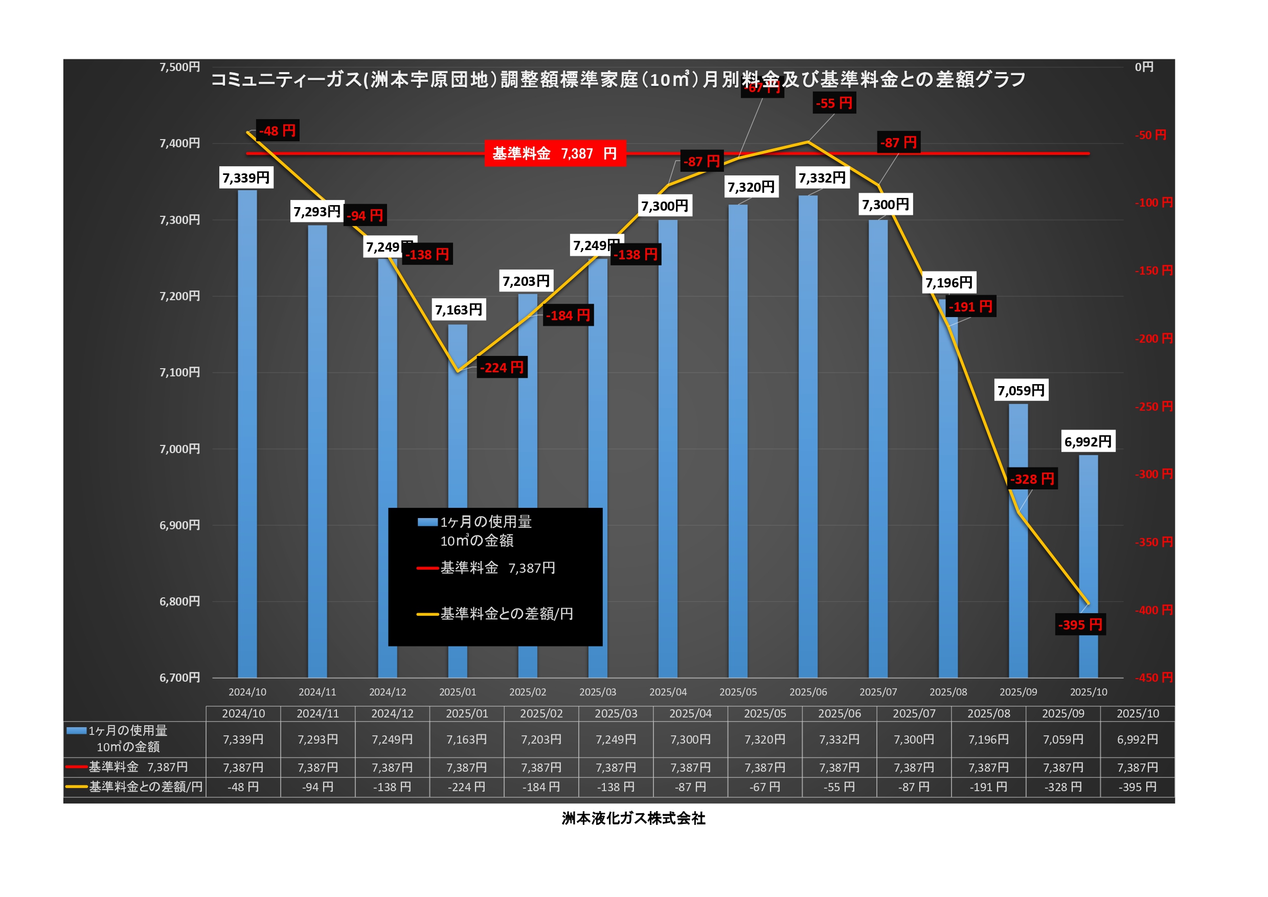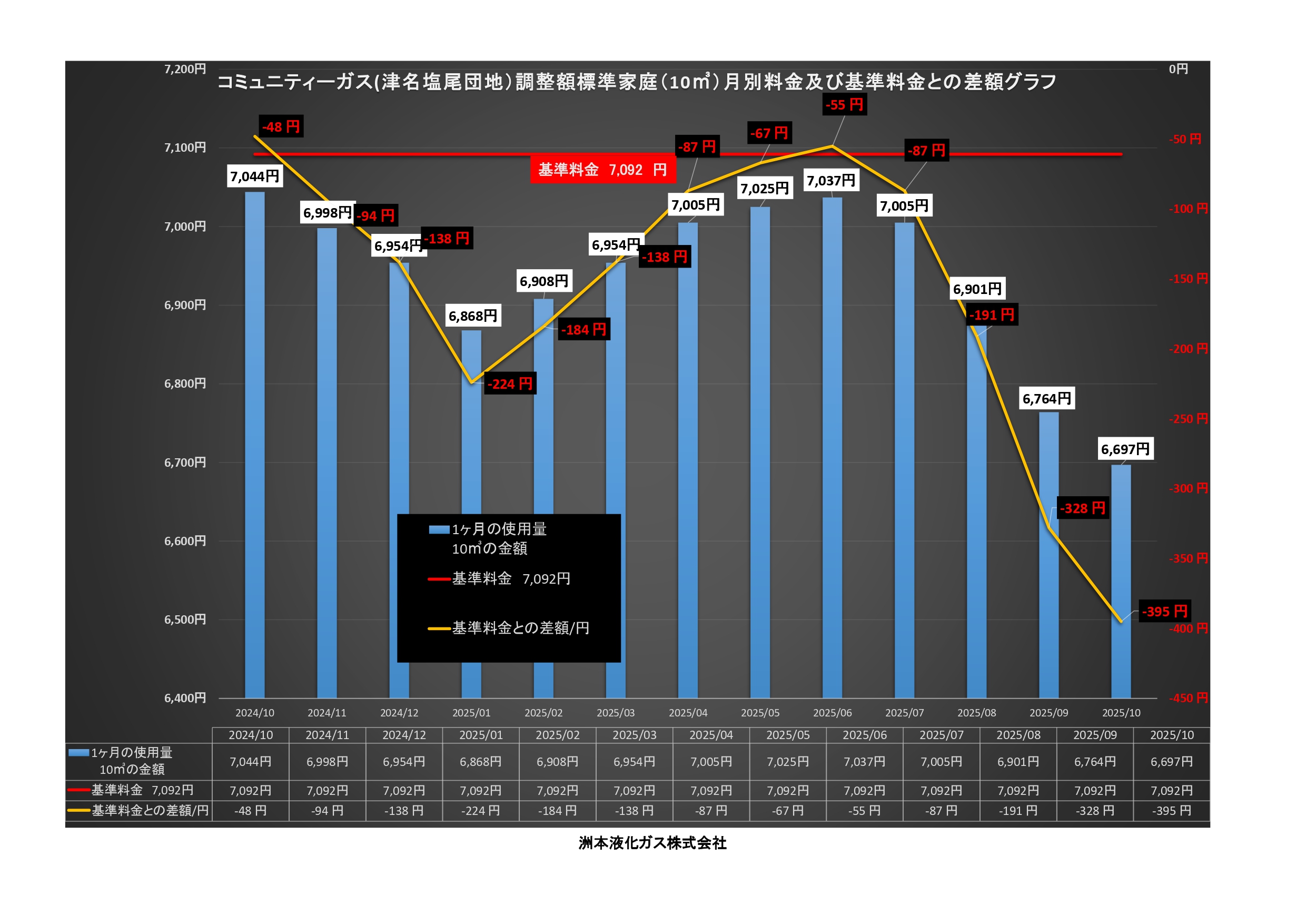 | 10㎥ | 6,764円 | 6,697円 | -69円 |