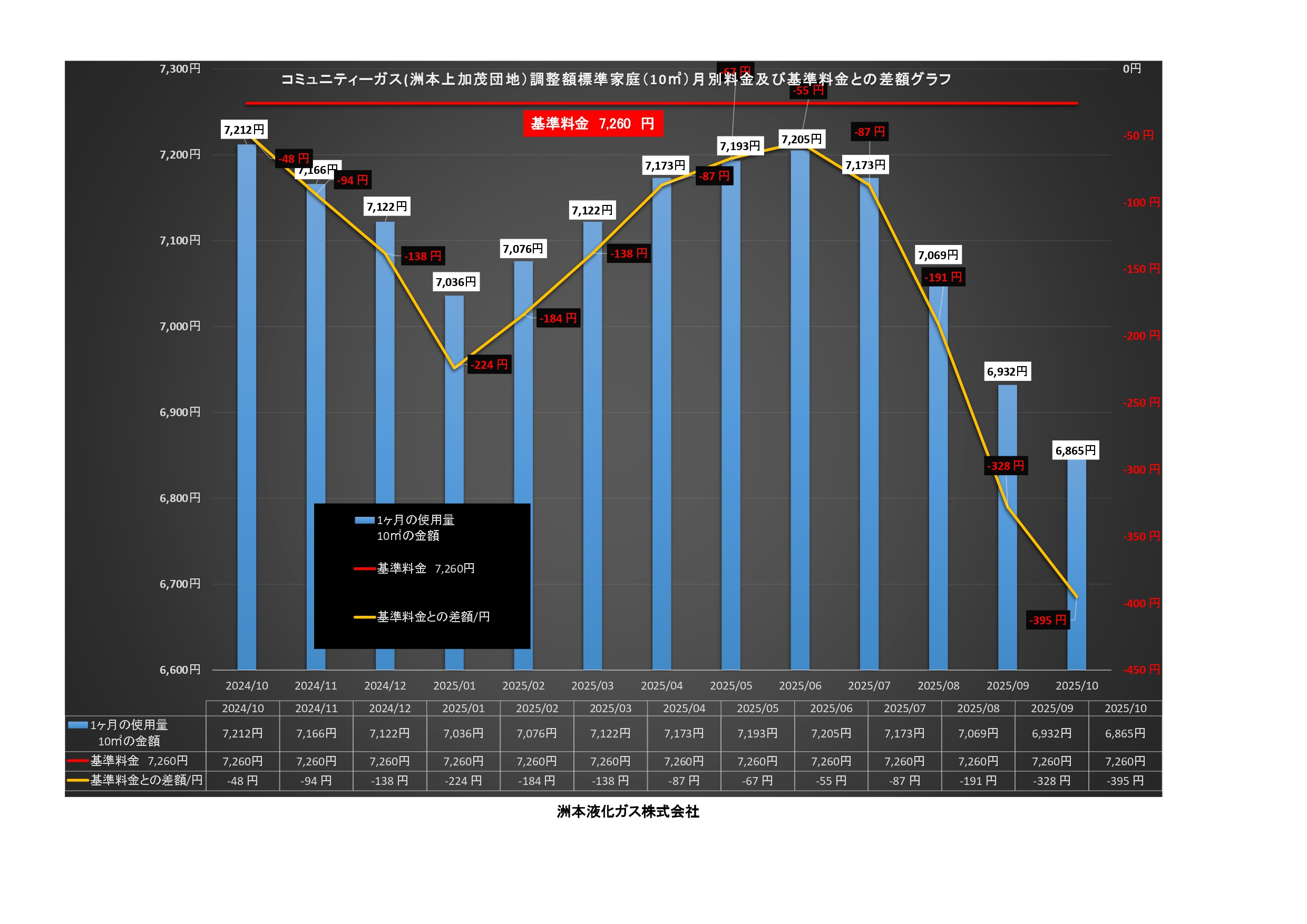 令和7年10月分の県公営上加茂団地、ガス料金について