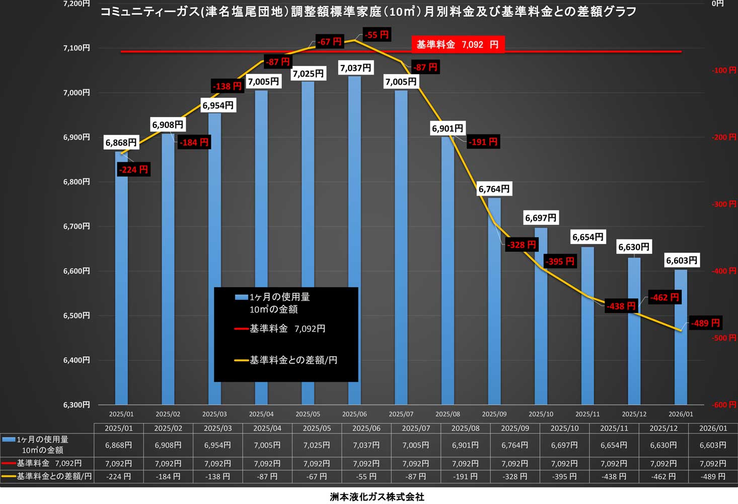 令和8年1月分の県公営津名塩尾団地、ガス料金について