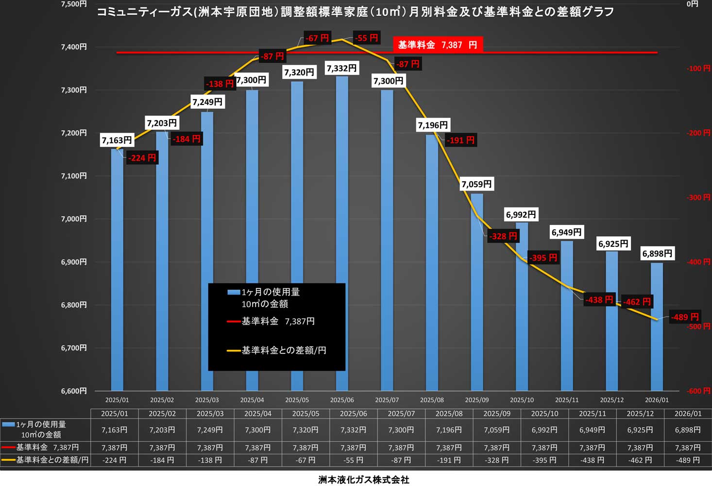 令和8年1月分の県公営洲本宇原団地、ガス料金について